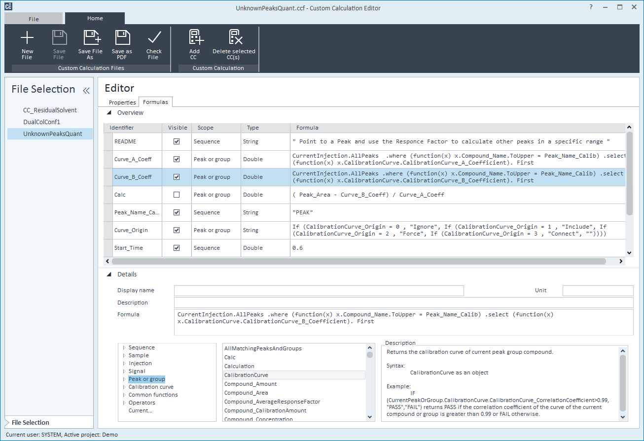 The Custom Calculator tool in OpenLab CDS automatically computes unique values directly within the software vs. exporting to spreadsheets. This removes error-prone calculation steps, allowing you to meet the data integrity requirements of GxP regulations with less effort. You can also display the values within the software or reports, which ensures they can be reviewed at the appropriate time for your lab's processes.