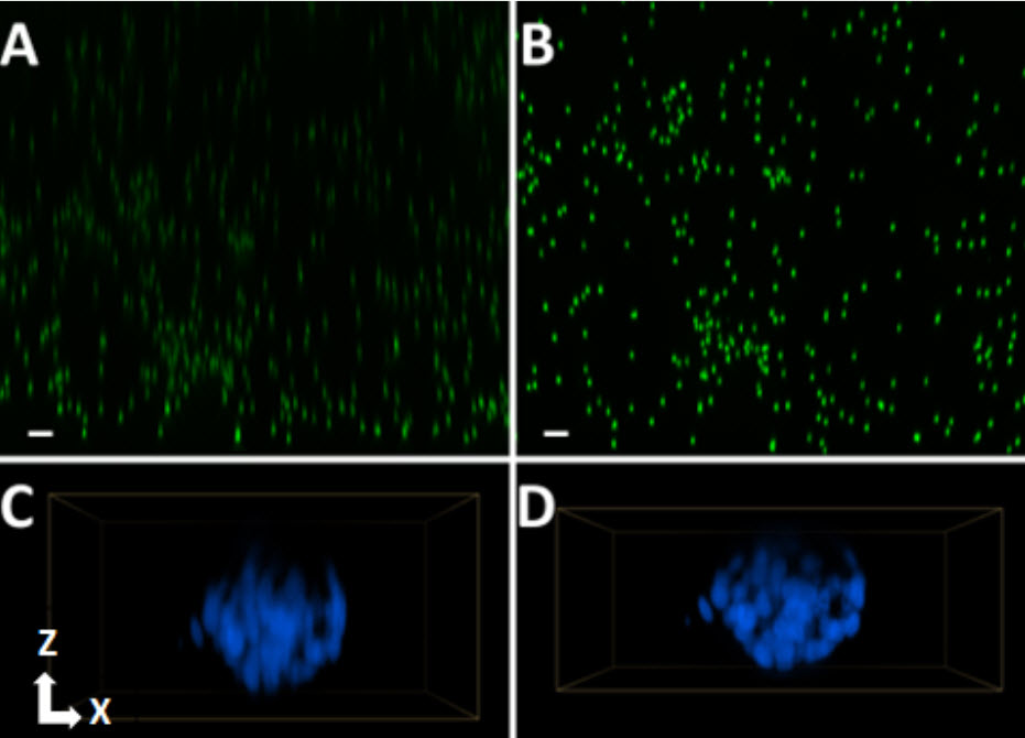 Light microscopy is a powerful tool that provides spatial insight into biological processes. Confocal microscopy improves image quality (e.g., Z-resolution and contrast) by reducing out-of-focus light. Water immersion images with high numerical apertures further improve image quality by collecting more light (relative to air objectives with lower numerical apertures but equal magnification), and better correcting for light distortion associated with refractive index mismatches between aqueous samples and the optical path of a microscope. This application note demonstrates the utility of the Agilent BioTek Cytation C10 confocal imager reader in a nuclear translocation assay. In this assay, TGF-β1-stimulated SMAD2/3 phosphorylation and nuclear translocation are quantified in both 2D adherent and 3D spheroid cultures of A549 adenocarcinoma cells. The new water immersion capabilities of the Cytation C10 allow for more efficient fluorescent signal detection of this low abundance phosphorylated SMAD2/3 species, improved Z-resolution of spheroids, and compatibility with high-throughput applications, such as multi-replicate dose response curves.