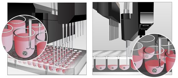 Depending on your live-cell model, you will choose adherent or suspension cells and there are several conditions to consider when plating your cells. The vast majority of cell types, both primary and cell lines, are anchorage-dependent and require adhesion cues as well as instructive cues to mimic their natural environment in vitro. Testing several published vessel-coating substrate combinations with your cell line will ensure you are using the most optimal scaffold conditions during your live-cell experiments. Many microplate vendors offer pre-coated or tissue culture (TC) treated plate types to start your experiments. Although adherent cells require periodic passaging, they are easily observable under a microscope. Although there are fewer suspension cell types, they are easily passaged, scalable, and are used for batch harvesting and bulk protein production. Keep in mind what conditions are required for your cells to remain in suspension such as low and ultra-low attachment vessel coatings and agitation. Many researchers hesitate to work with live, suspension cells due to their potential for loss of cells when exchanging media. The new AMX module for the MultiFlo FX, designed to exchange media with suspension cell types as well as spheroids, is another great tool that helps prevent loss or disturbance of floating cells or spheroids.