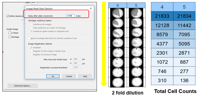 In addition, many instruments have trouble imaging suspension cells in an automated way, making them cumbersome to work with. In the Gen5 software, using either the Lionheart FX or the Cytation, the user can also modify image capture for both adherent and suspension cell types. For any suspension cells or suspended spheroids, increasing the delay in the plate movement ensures the cells are not moving while imaging.