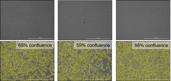 Cell culture density is an important variable to consider during routine maintenance of cell lines, as well as for optimizing downstream applications. Frequently, cell culture density is approximated by visually inspecting a small area of the culture vessel and subjectively assigning an overall confluence. Automated image analysis provides a much more accurate and consistent method for determining cell density (Figure 1).