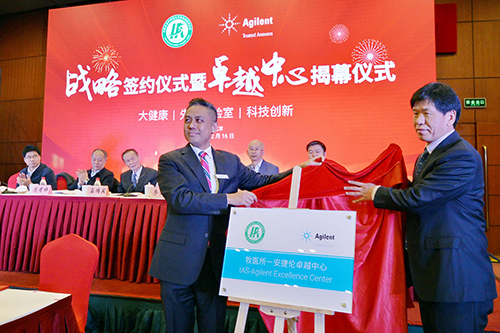 安捷伦科技全球副总裁兼实验室解决方案大中华区总经理陈亮(左)与牧医所所长秦玉昌(右)为卓越中心揭幕