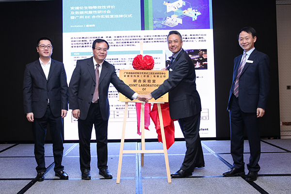 2018年3月12日,广州——安捷伦科技公司(纽约证交所:A)今日宣布由安捷伦科技、广州医大新药创制有限公司(以下简称“广医新药”)共同建设的“广州医大新药创制有限公司-安捷伦科技生物等效性分析共建实验室”正式揭牌。双方将在基于质谱技术的生物等效性(Bioequivalence,简称“BE”)分析领域进行合作,从硬件、软件、解决方案等多方面帮助广医新药提升开展BE实验的准确性与效率。