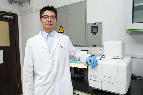 蒋盛威博士与实验室里的安捷伦BioTek Synergy H1 多功能微孔板检测仪