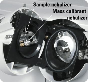 一些安捷伦离子源拥有双雾化器型号,用于 TOF 和 Q-TOF 质谱仪。双雾化器离子源通过由一个独立专用的雾化器引入内标参考质量,能最大程度地增加质量准确度及易用性。该功能还有利于自动调谐,这在 TOF 和 Q-TOF 仪器中很少见。