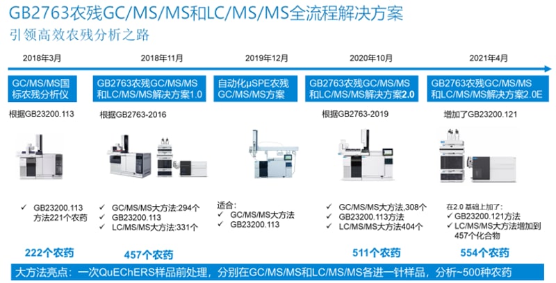 随着标准和检测技术的更新和进步,安捷伦 GB2763 农残 GC/MS/MS 和 LC/MS/MS 全流程解决方案不断优化方法,为客户提供先进、便捷的方法,无论是提高实验室食品安全风险预警,隐患排查的能力,还是要遵循标准方法进行日常检测,安捷伦 GB2763 农残 GC/MS/MS 和 LC/MS/MS 全流程解决方案 2.0E 都能助您一臂之力!