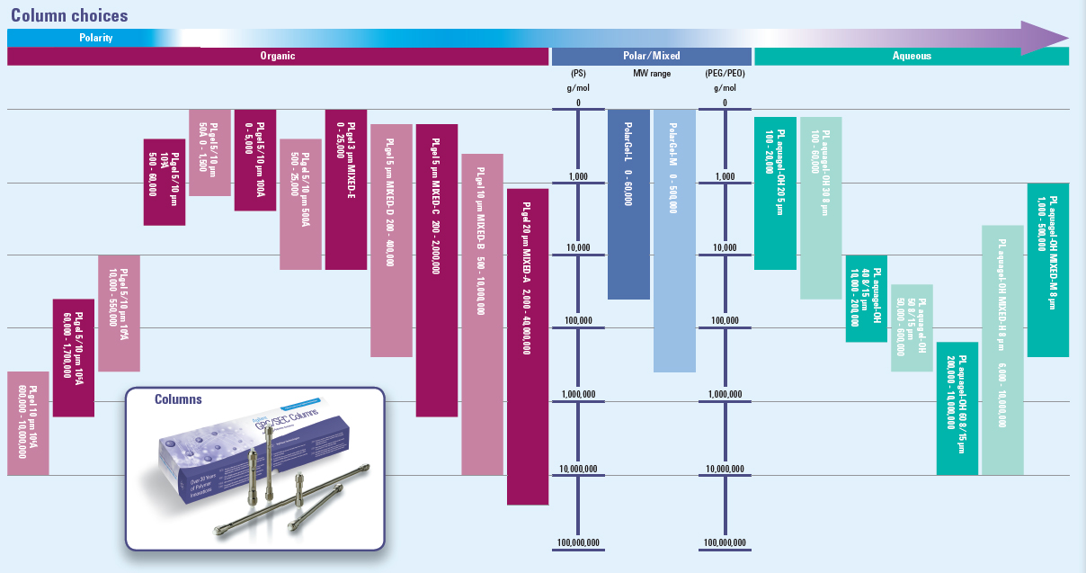 Agilent robust GPC/SEC columns are used for molecular weight separation using organic solvents.