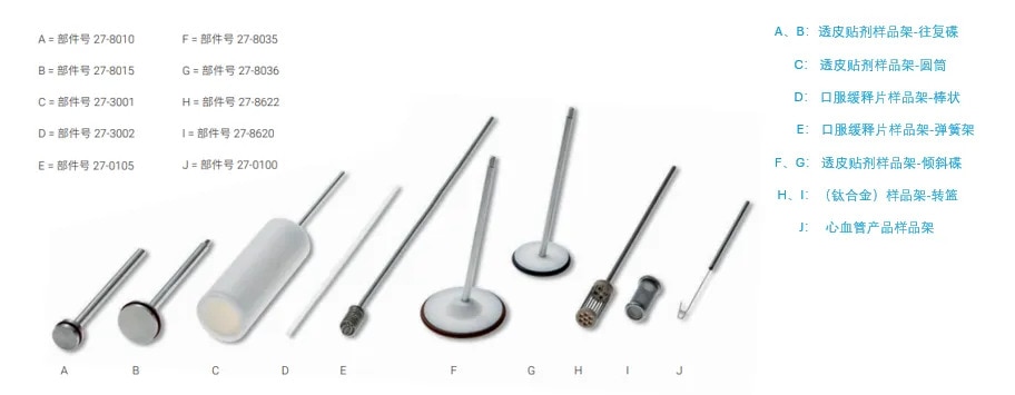 Vankel(Varian 于 2000 年收购了 Vankel;2010 年,Varian 又被 Agilent 收购)和 Alza 公司于上世纪 80-90 年代基于往复筒法,一起合作开发了第一台往复架法,并推动其商业化,该方法最终收载为 USP <724> 章节中第 7 法。安捷伦往复架法适配的支架种类非常齐全,可适用各种类型的制剂。