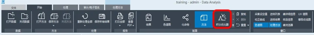 选择序列中的一针典型色谱图来调整积分参数。